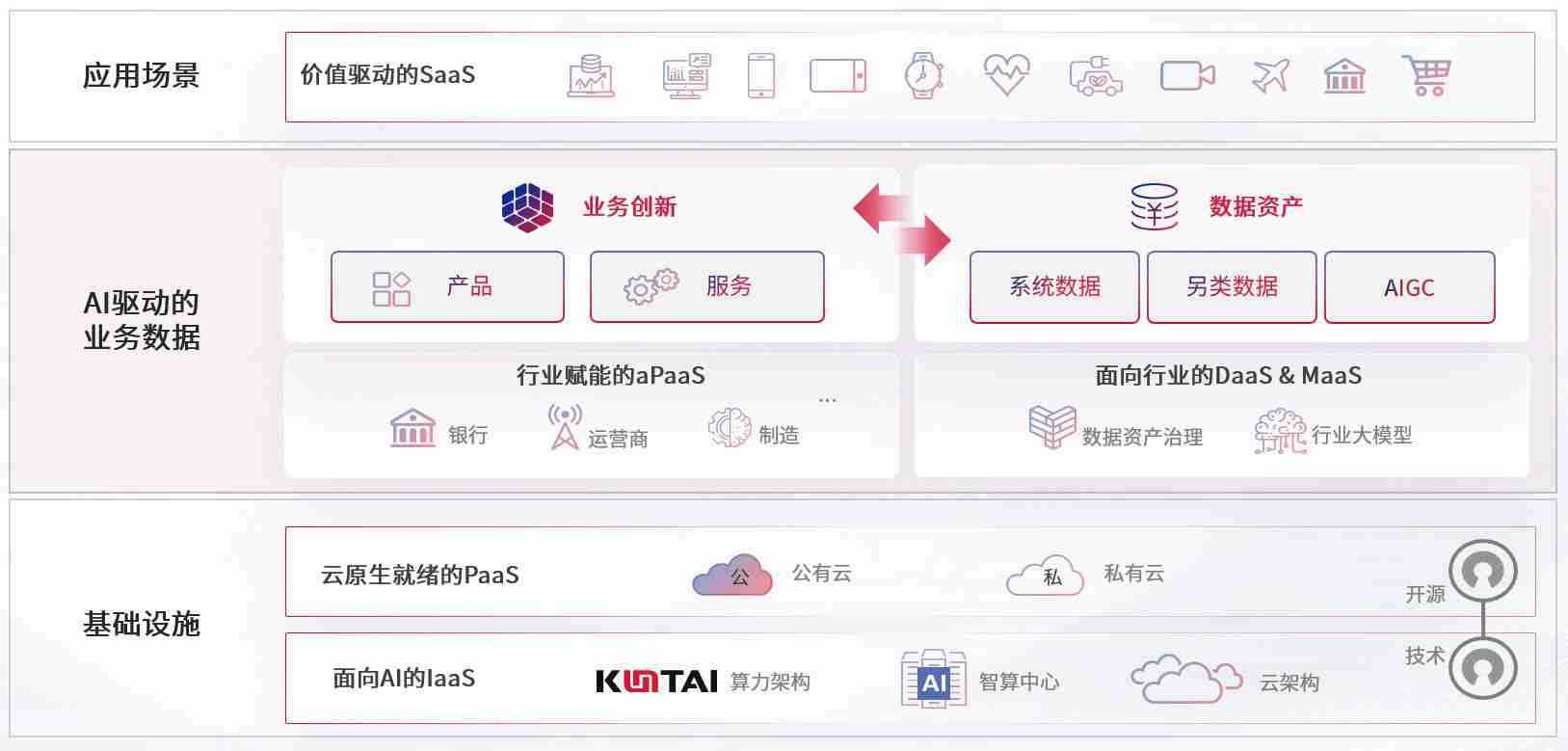 数字时代,,,围绕企业数字化转型的关键要素,,欧博代理平台数码开创性的提出数云融合战略和技术体系框架,,,,着力在云原生、、数字原生、、AI原生和信创产业上架构产品和服务能力,,,为处在不同数字化转型阶段的快消零售、、、汽车、、、、金融、、、医疗、、政企、、、、教育、、、、运营商等行业客户提供泛在的敏捷IT能力和融合的数据驱动能力,,构建跨界融合创新的数字业务场景和新业务模式,,,助力企业级客户建立面向未来的核心能力和竞争优势,,,全面推动社会的数字化、、、智能化转型升级。。。